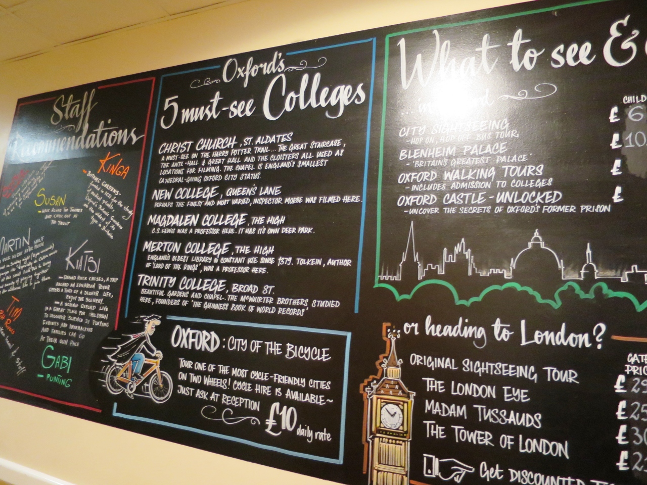 しかし、オクスフォードのYHは中心部の鉄道駅のすぐそばにあり、観光地へのアクセスが良い(市街地の一番遠い大学までも徒歩20分程度)。そして、このYHには子供連れの家族向けにファミリールームの設定があり、ホテルに宿泊するよりもかなり安く宿泊できる。