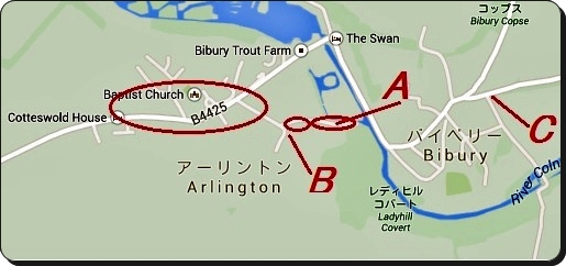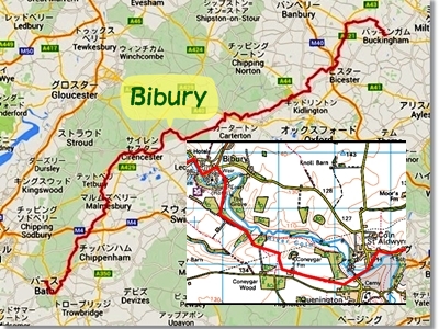 地図1:バイブリーの村の中の石造りの家を巡るフットパス