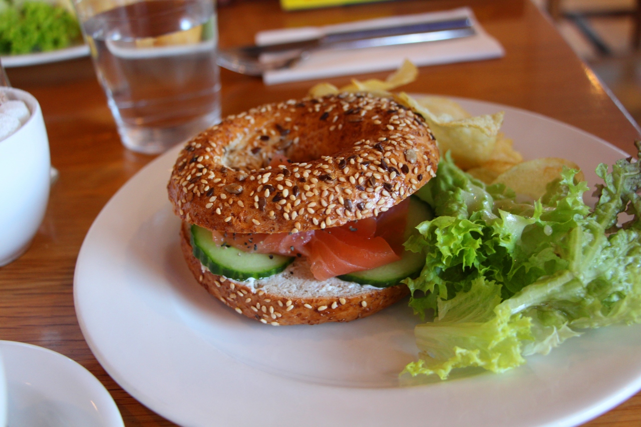 私たちは、昼食時に訪れ、ベーグル、パニーニ、クリーム・ティをオーダーした。