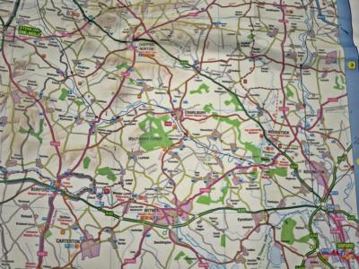 地図の中のB4425道路を囲む大きな楕円方向に向けてフットパスを歩く。