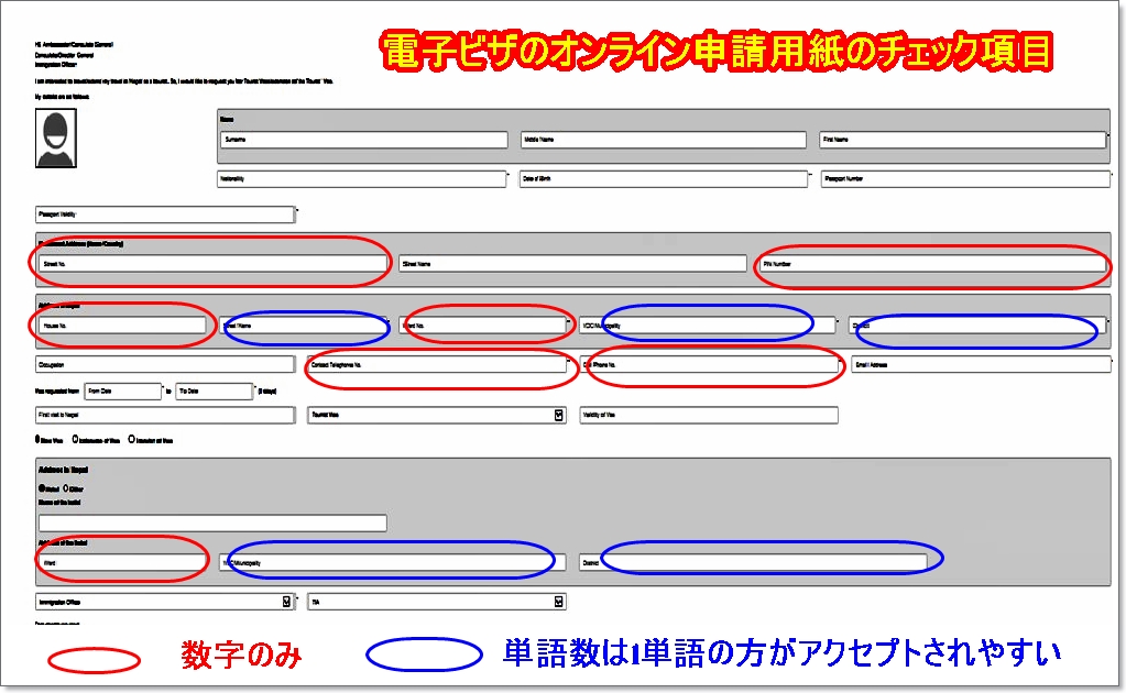1.住所等でStreet No.、PIN No、House No.、Ward No.など数字の入力を指示してある欄は数字のみを入力しましょう。