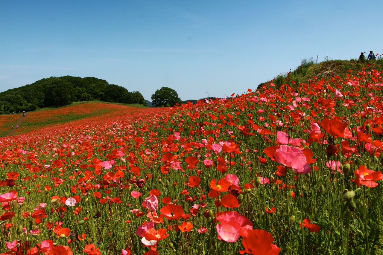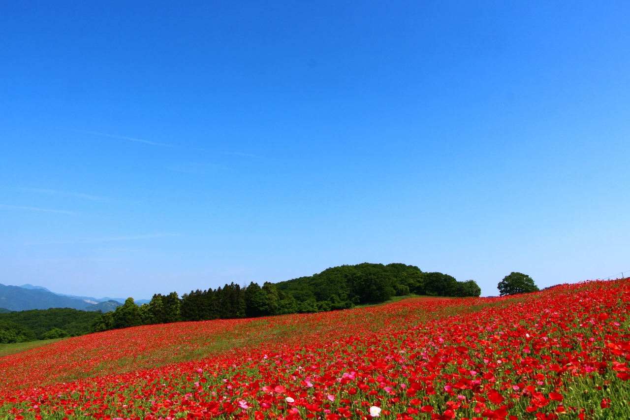 天空のポピー畑と呼ばれる山の斜面一面に広がるポピー畑があるのは、埼玉県秩父地方の皆野町。