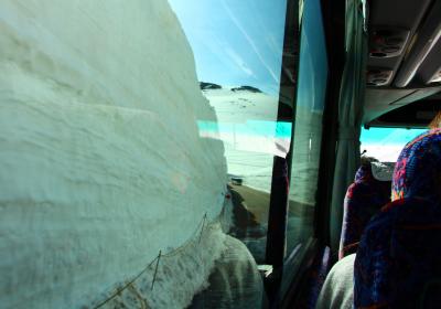 バスは移動手段だと思われがちだが、アルペンルート関しては別で、多くの見所があり、寝ていて見過ごした~なんていうのはもったいない。