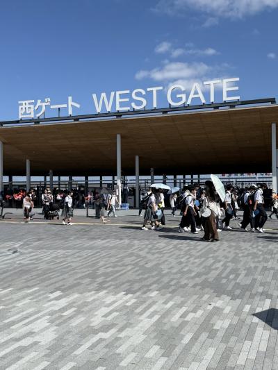 いよいよ万博会場です。西ゲートです。158か国・地域+7つの国際機関の...