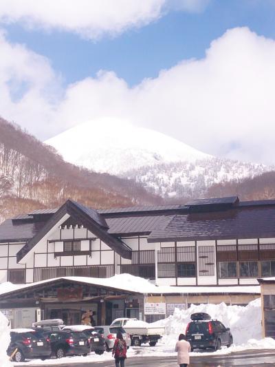 本来、3月上旬なら麓から温泉のあたりは路面も圧雪状態のはずだけれど、暖冬のためか路面も出ていてバスのドライバーさんも「ホントはこんなもんじゃない。」と話していた。