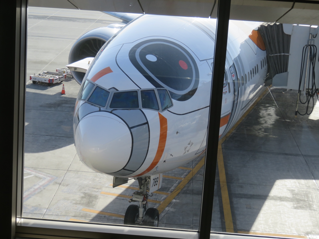 深夜羽田発の便を利用しました。サービスなどは別として、偶然にも、スターウォーズ塗装機材にあたり、嬉しかったです。特別塗装をしているだけでなく、ギャレイに、ヨーダのぬいぐるみを置いていたり、ヘッドレストや紙コップ、そしてCAさんのエプロンも、スターウォーズ仕様になっていて、気分が盛り上がりました。楽しかったです。