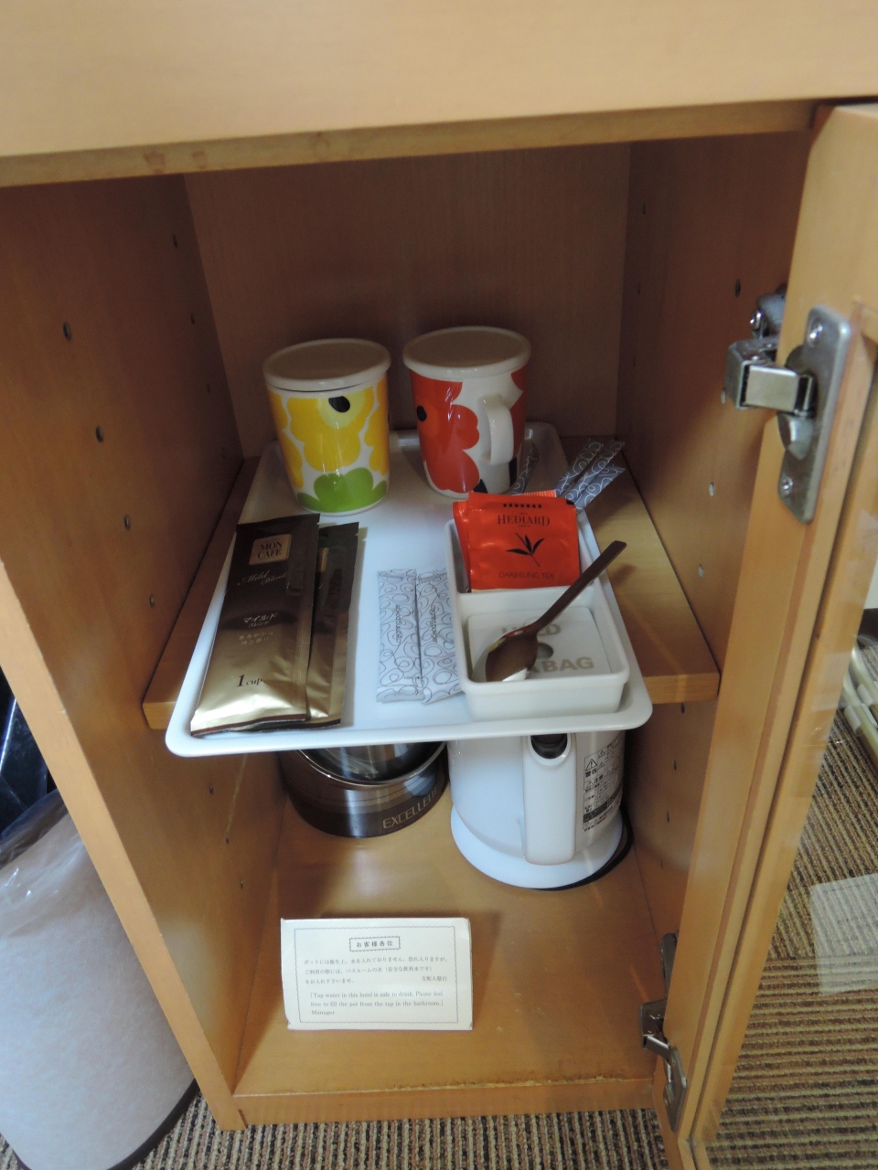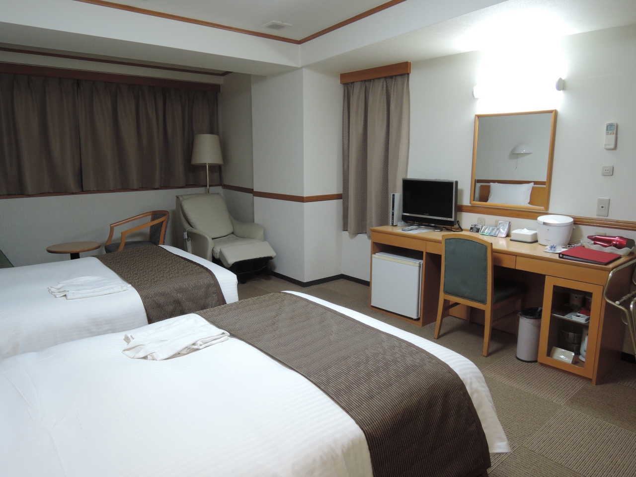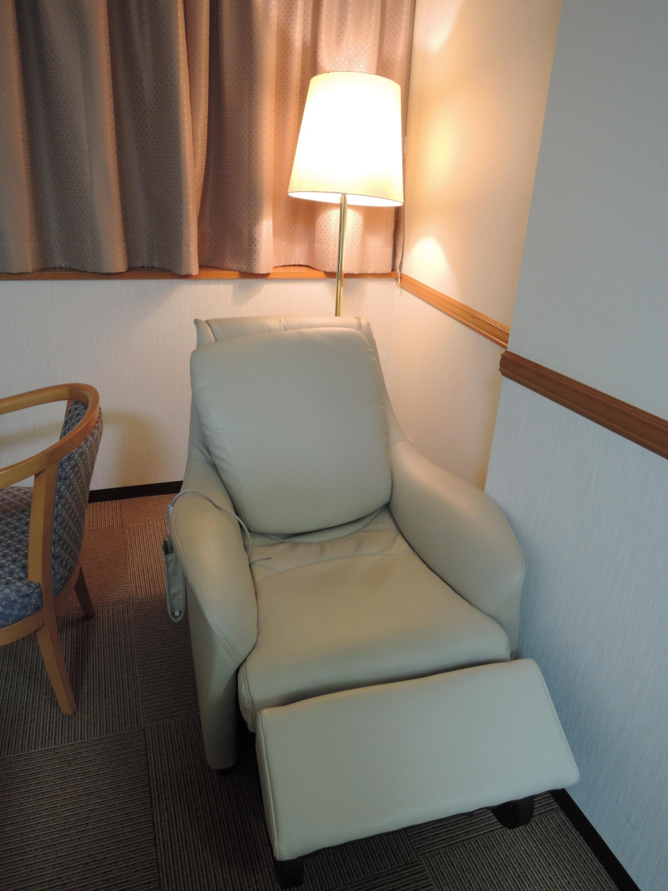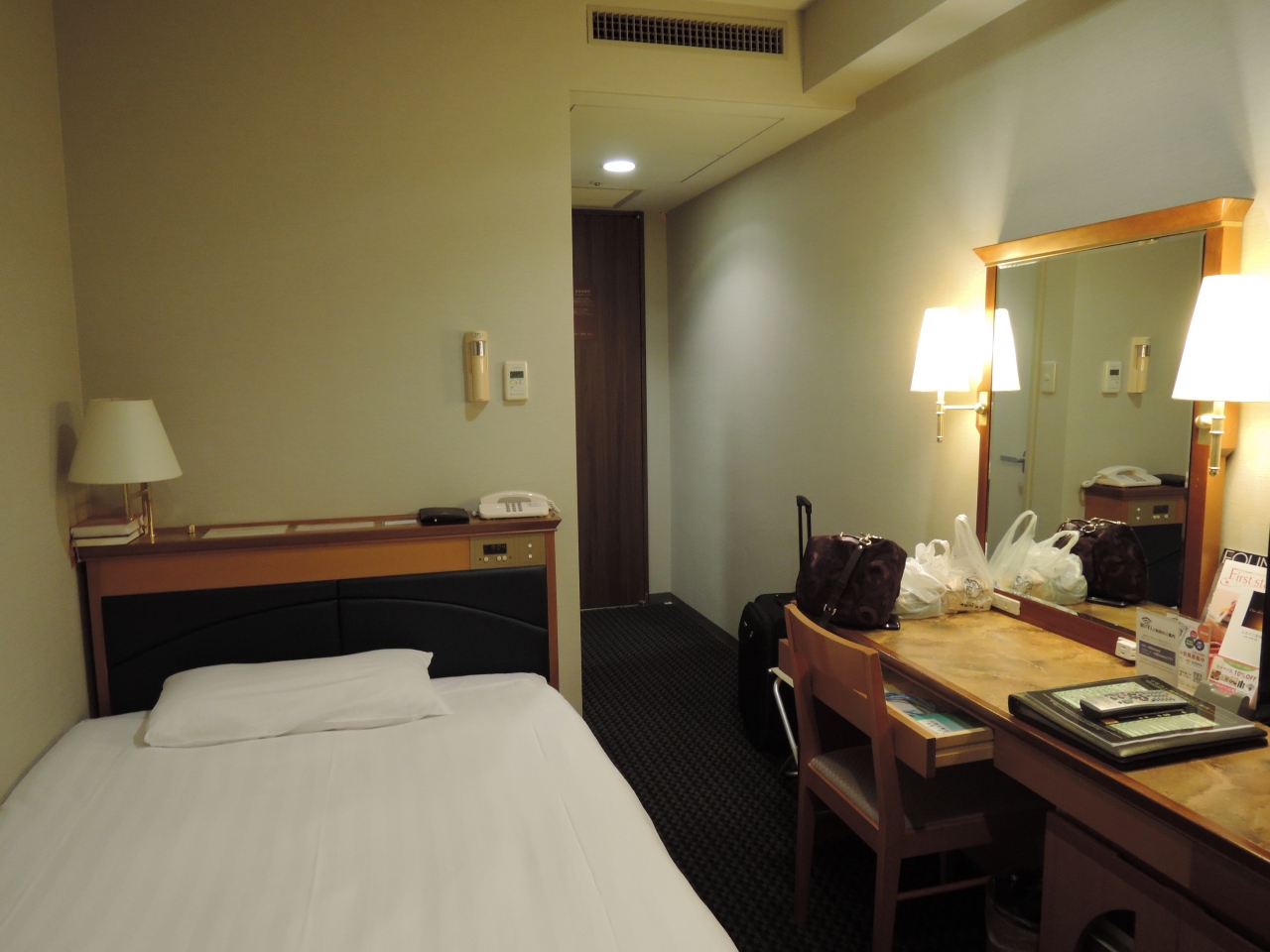 夜遅く到着するため、駅前のホテルということで、立地重視で選びました。シングル予約でしたが、当日はツインの部屋をアサインされ、ここがレディースルームだったようで、とてもラッキーでした。室内は、広々としていて、マッサージチェアや美顔用スチーマーなどがあり、女子旅にはグッドな仕様のお部屋でした。
