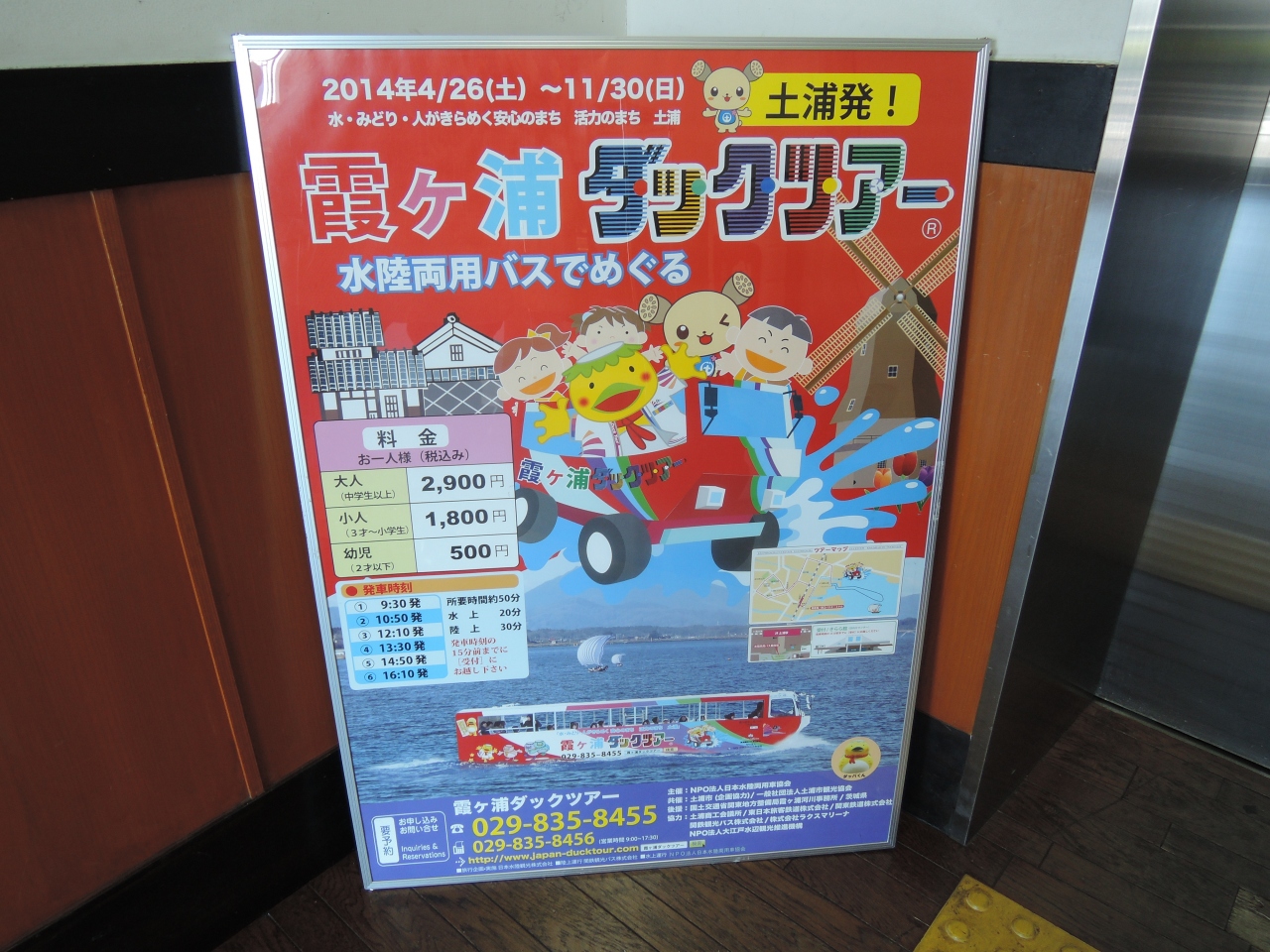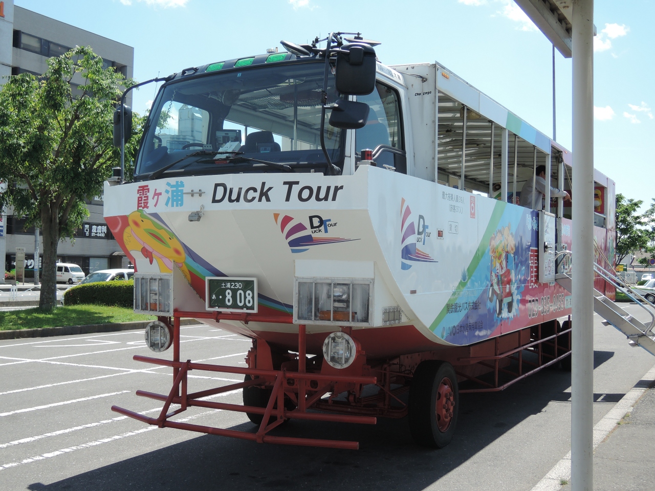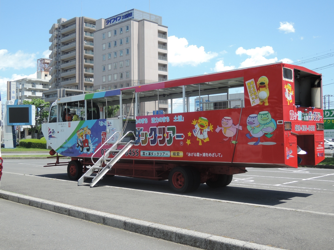 霞ヶ浦ダックツアーが5月から始まり、早速体験してきました。赤いバス型の水陸両用車。外国のダックみたいに、もう少し丸みがあると可愛いけど。。日本の法律でできないのでしょうか。陸部分の観光は、市内をくるりとひと回り。残念ながら、見どころはそれほど多くはないけど、ガイドさんがものすごく盛り上げてくれた。そして、いよいよマリーナから霞ヶ浦へスプラッシュイン。この瞬間が一番面白かった。筑波山を遠目にみながら、霞ヶ浦遊覧して、土浦駅に戻り、ツアーは終了でした。