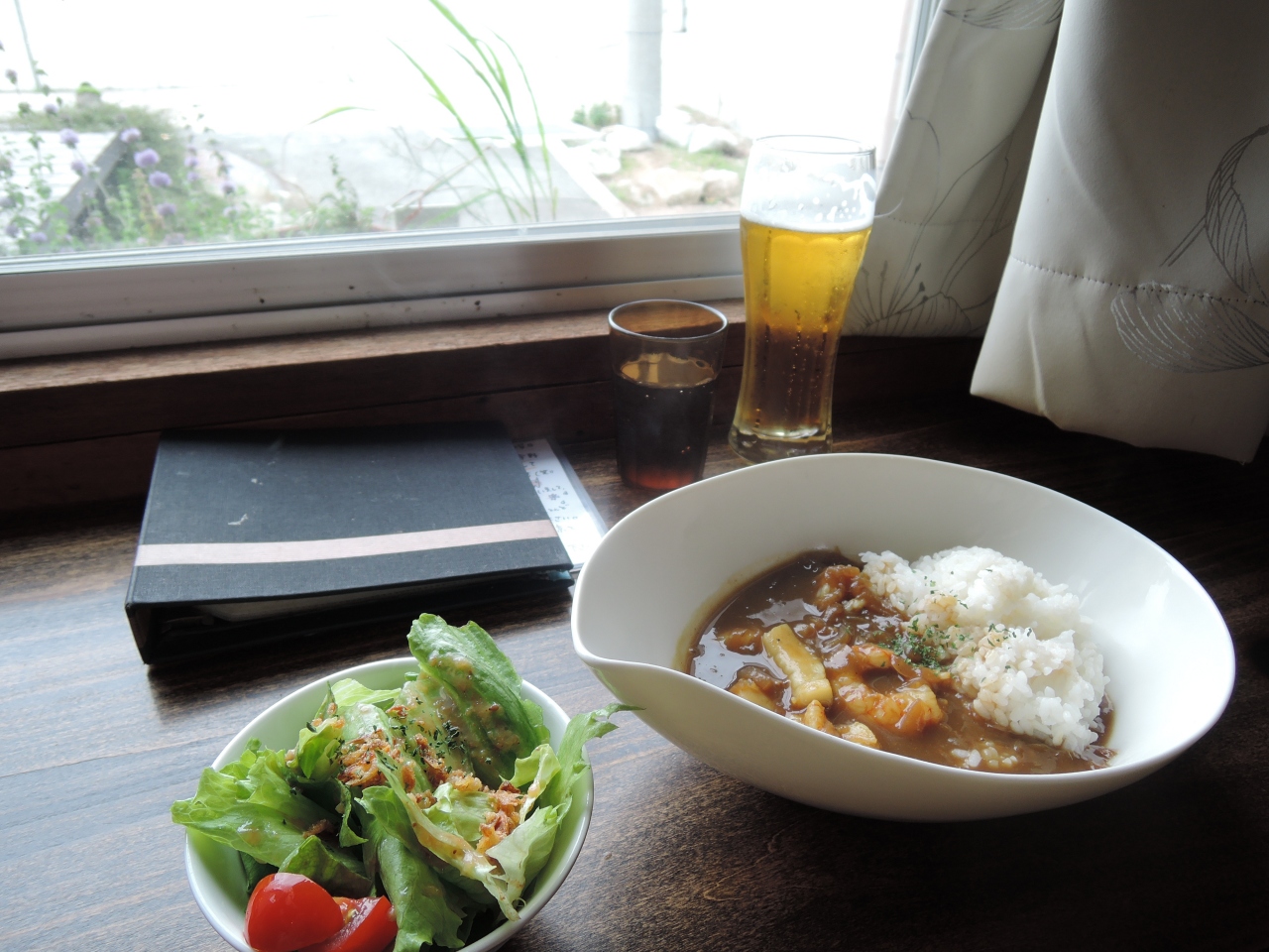 普通の民家のお部屋のような店内。靴を脱いで、親戚のおうちにお邪魔するような雰囲気です。窓際の席からは、港が見えて、癒される風景でした。ランチセットは数種類ありましたが、チーズリゾットをいただきました。とても美味しかったです。セットのソフトドリンクを、追加料金でビールに変更していただきました。