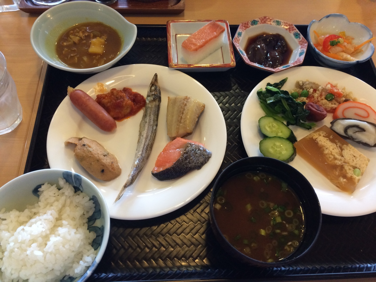 ビュッフェ形式で、品数はそう多くはありませんが一般的な卵・魚・肉料理に加えて、奄美の郷土料理やカレーなどがありました。メニューは日替わりで飽きませんでした。
