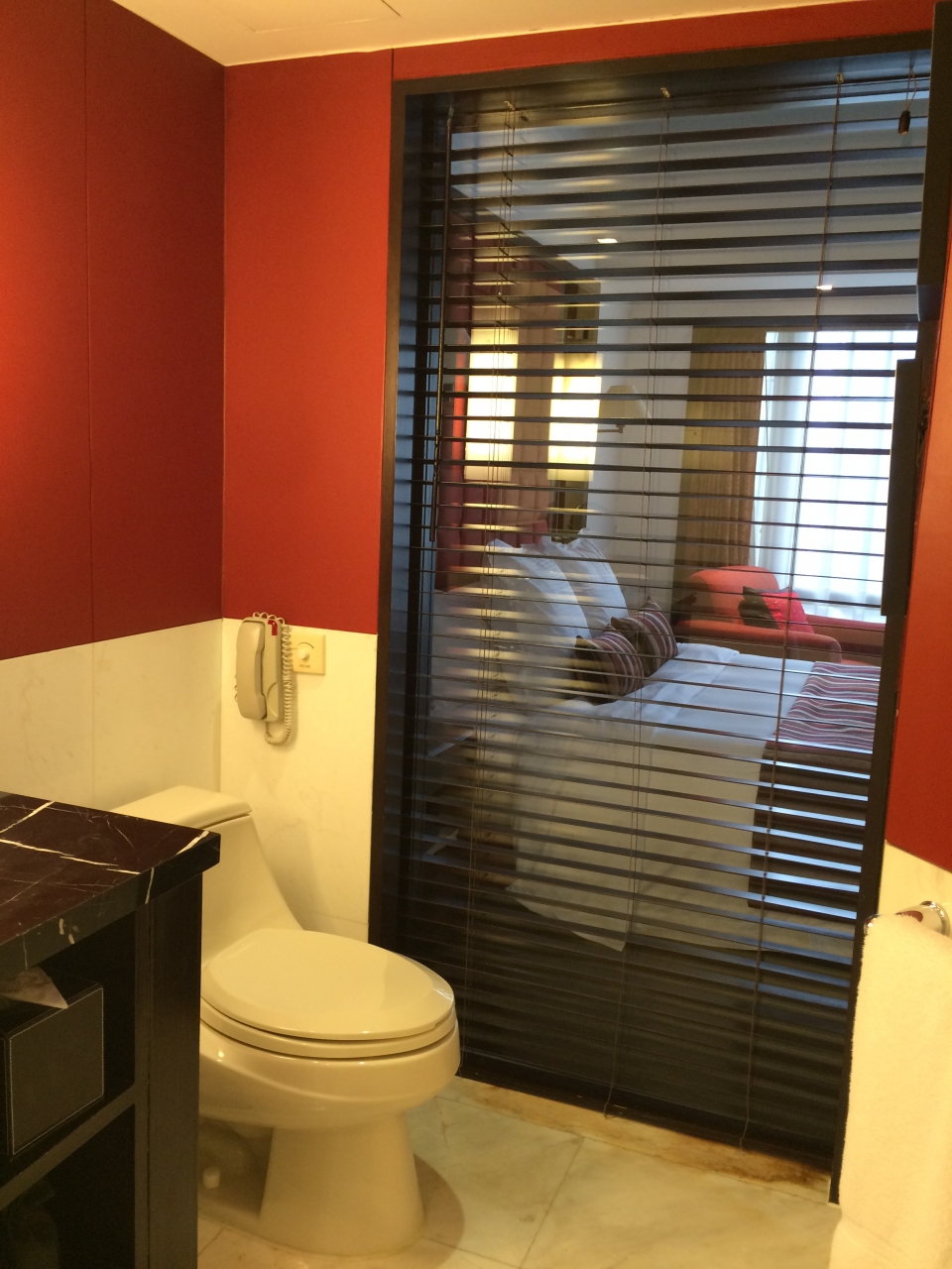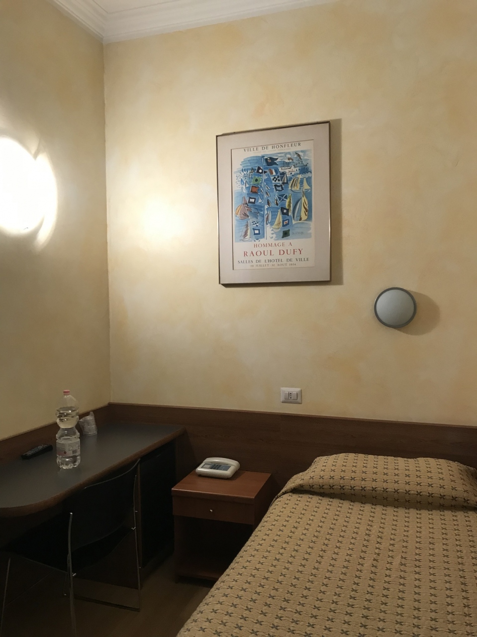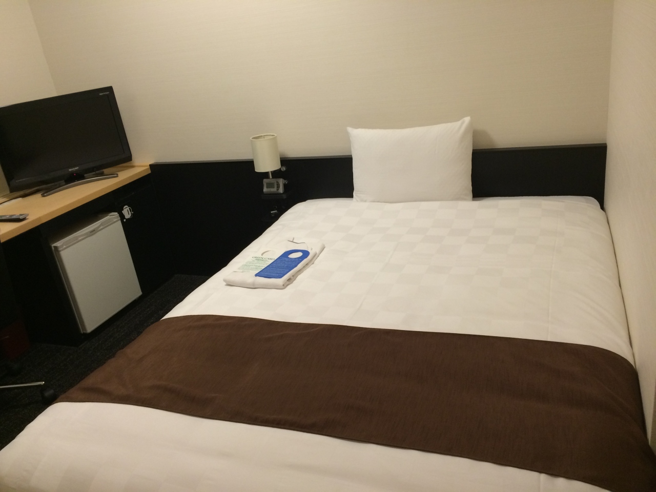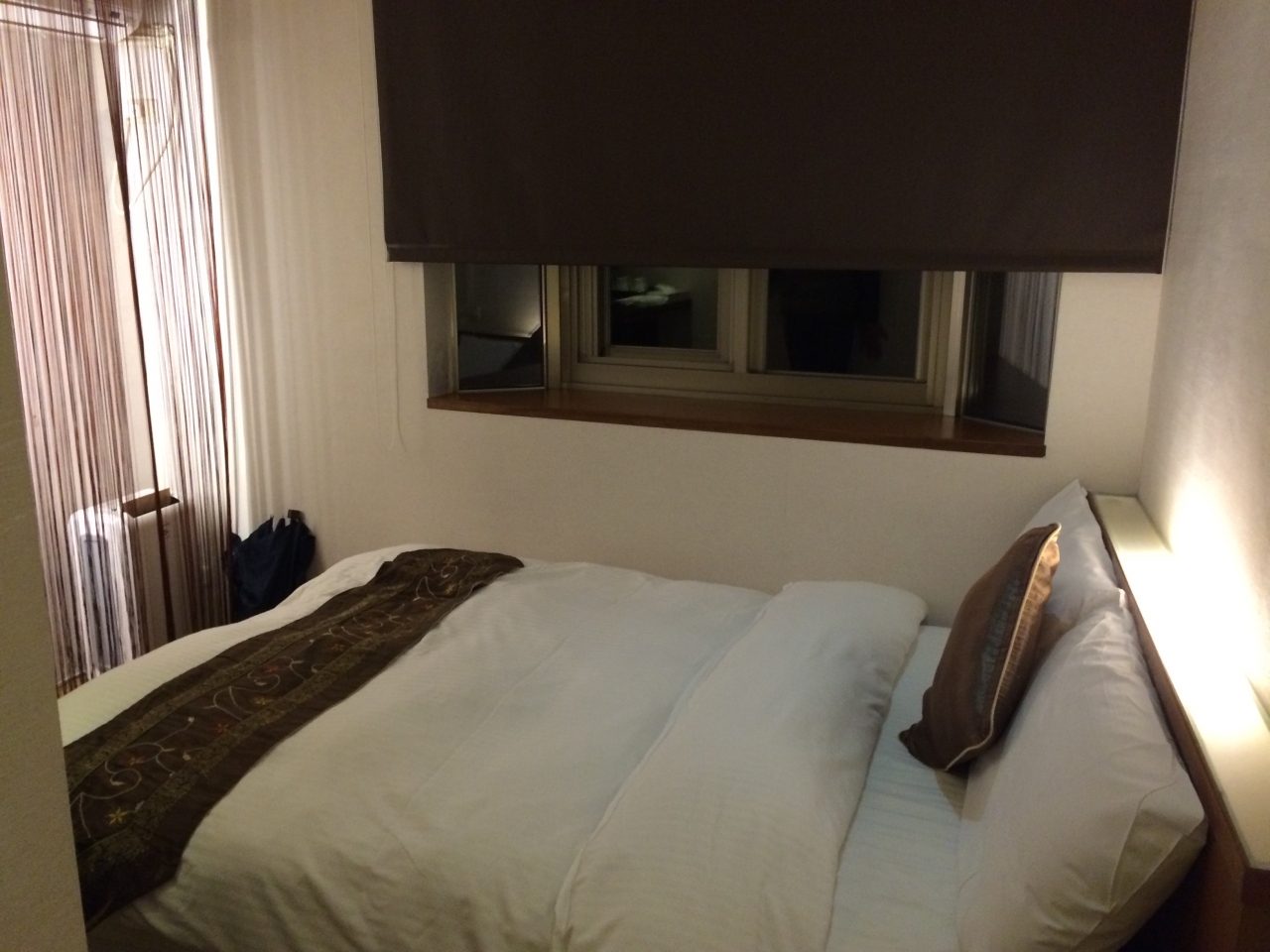一番リーズナブルな部屋を頼んだので広くありませんでした。ダブルベッド一台と通路でおしまい。窓からは隣の家の壁。