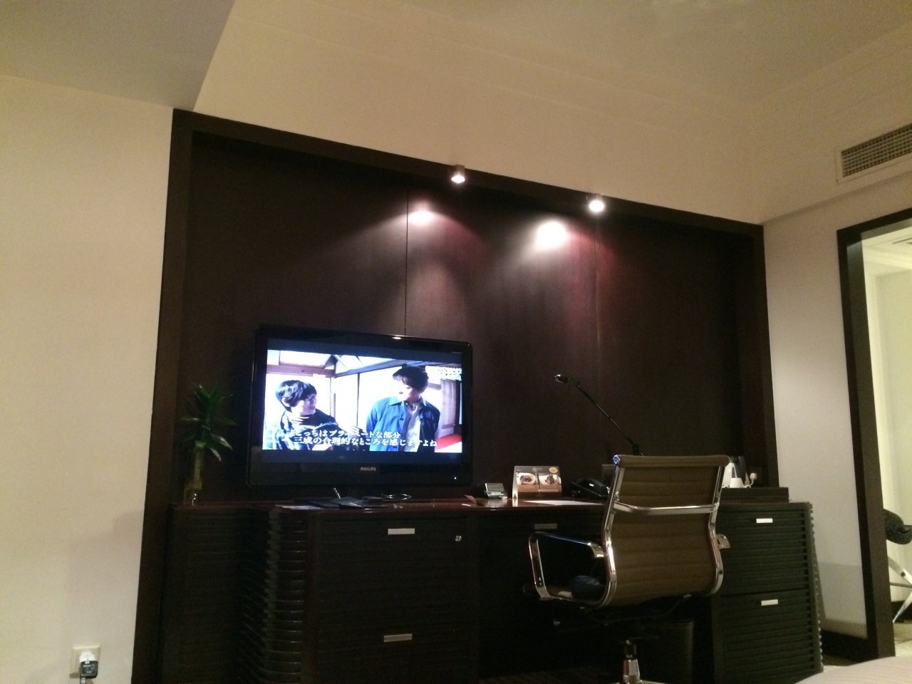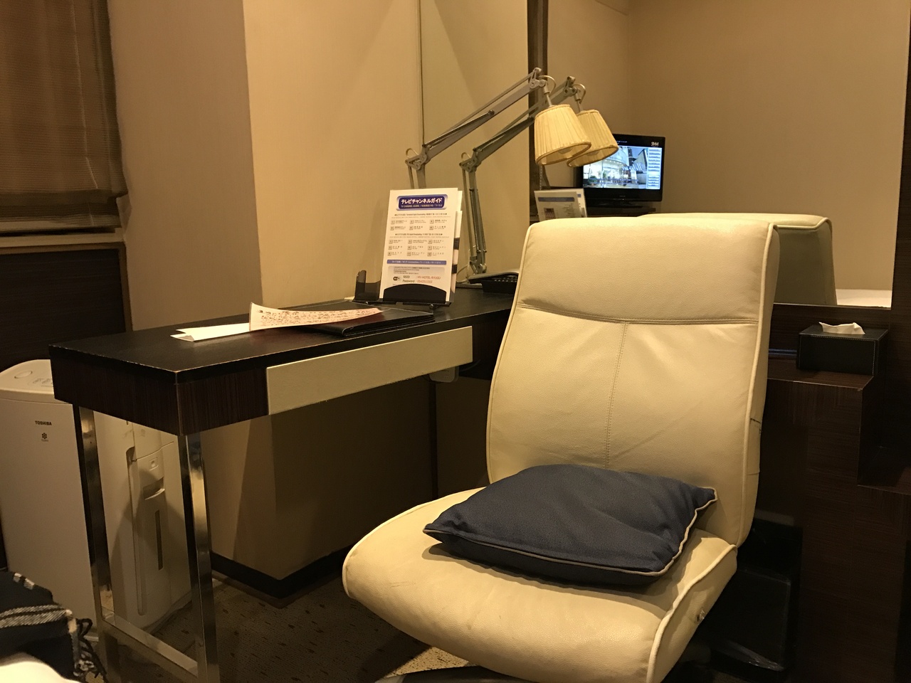 テレビ台兼用ではなく、デスクとチェアが設置してあり、ビジネスマンには良いです。