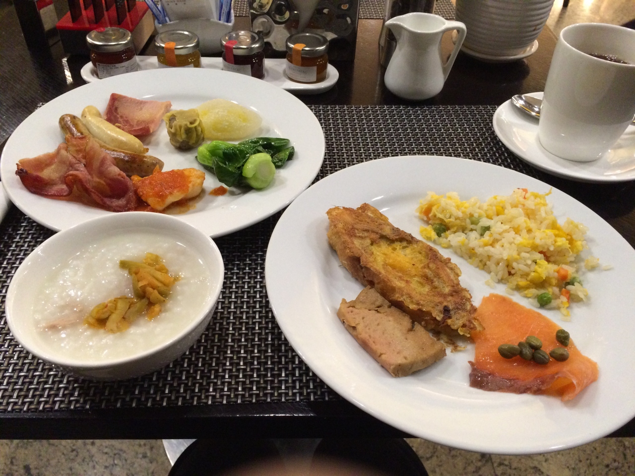 朝食ビュッフェは特に可もなく不可もない品揃えとお味でした。