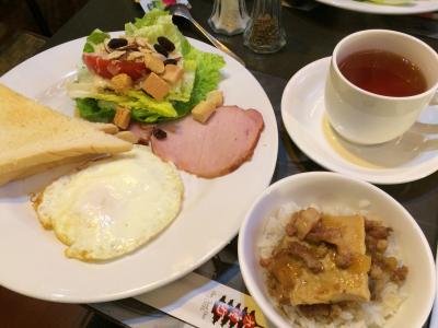 私たちが泊まった時は、ビュッフェ形式ではなく目玉焼きとサラダ、ハム、トーストの1プレートが出てきました。