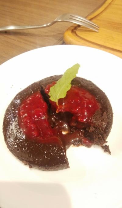 とろ~り溶け出るチョコと、フォンダンショコラのコクと、ベリーソースが酸味がマッチしていて最高。
