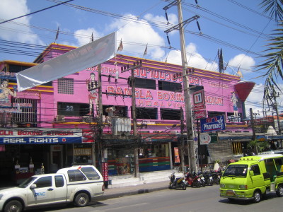 パトンビーチ1の繁華街、バングラ通りとソンローイピー通りの角にムエタイのスタジアムがあります。