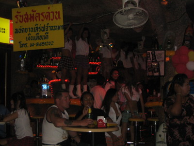 制服姿の女性達がカウンターの上に昇り、ダンス・ダンス・ダンス。