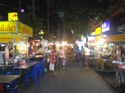 もしお安く食事をしたいなら、ビーチ通りより1本内陸にある通り(ラチャウシット通り)のアンダマンビーチスィートホテル入り口周辺に数百mほどの屋台街があります。