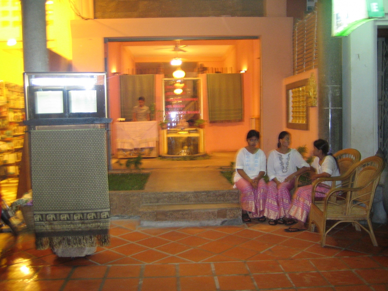 店の前ではマッサージ師が待ち受けています、マッサージ&スパの看板がかかった店に入りました。