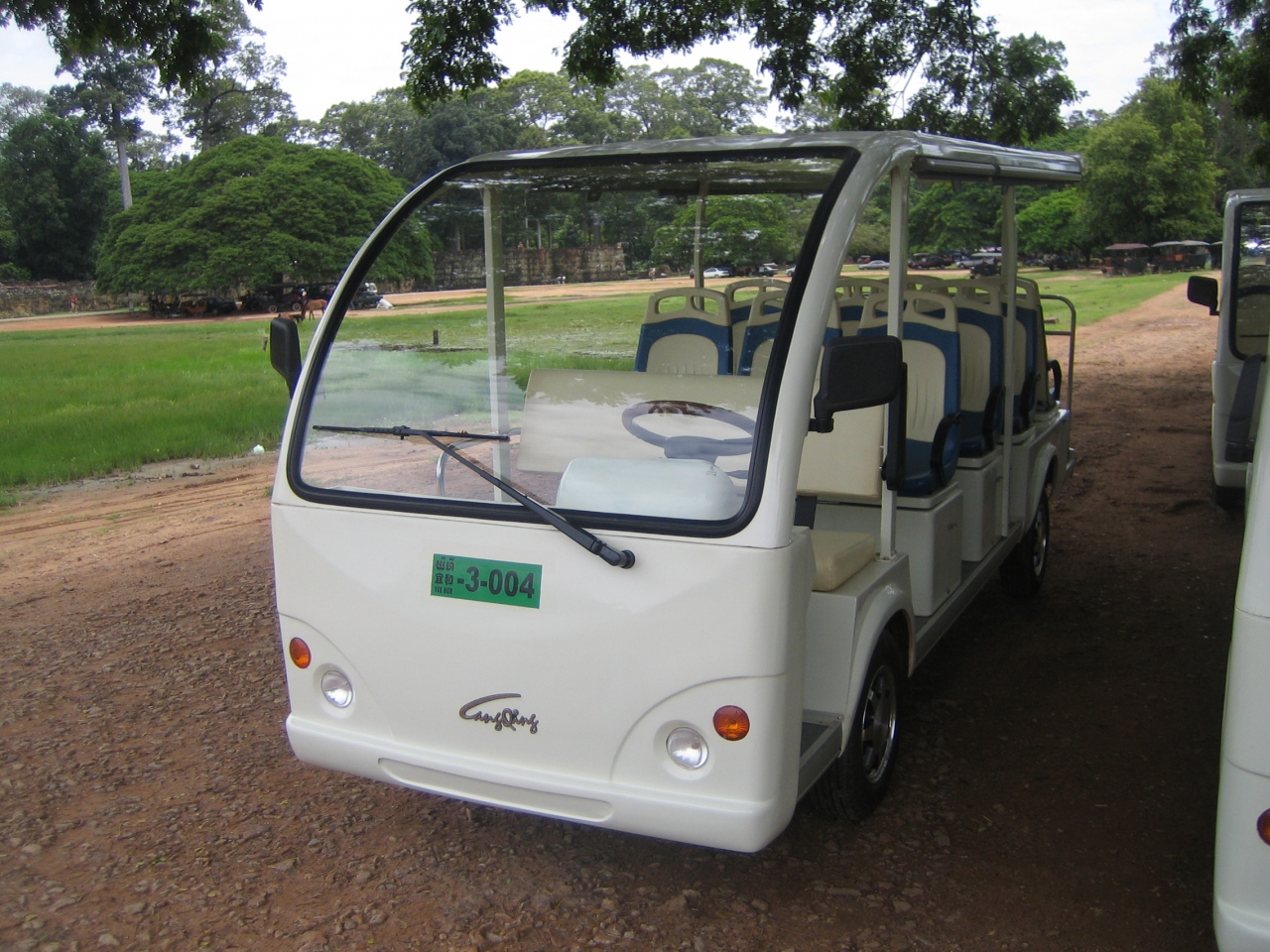 アンコール・トム王宮広場の中央に位置する、大きな木の下に連結された電動自動車が3台あった。