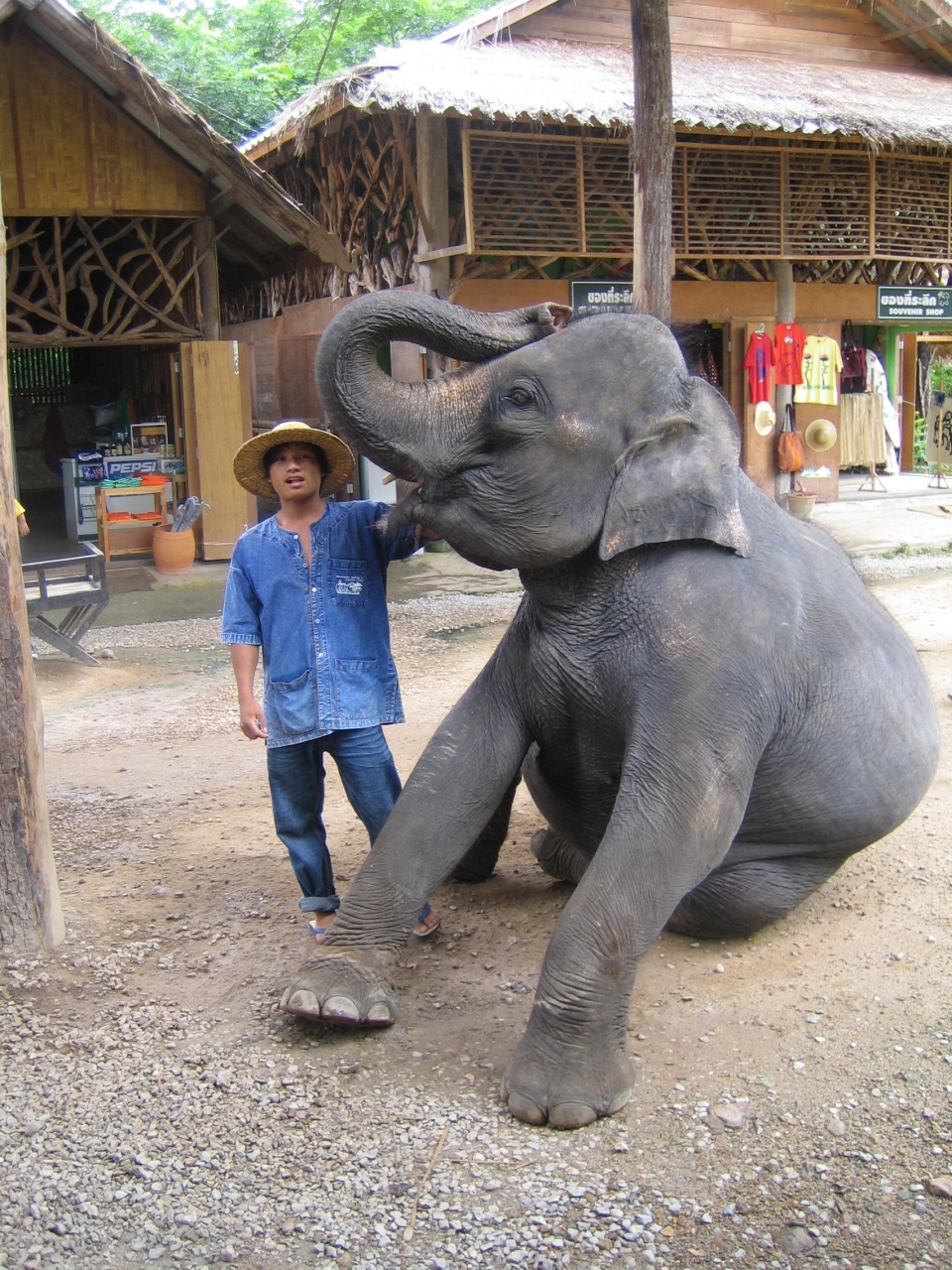 朝: ガイドさんが、ミニバスにて宿泊ホテルへミニバスにてお出迎え、メーテーンにあるエレファントキャンプへ。