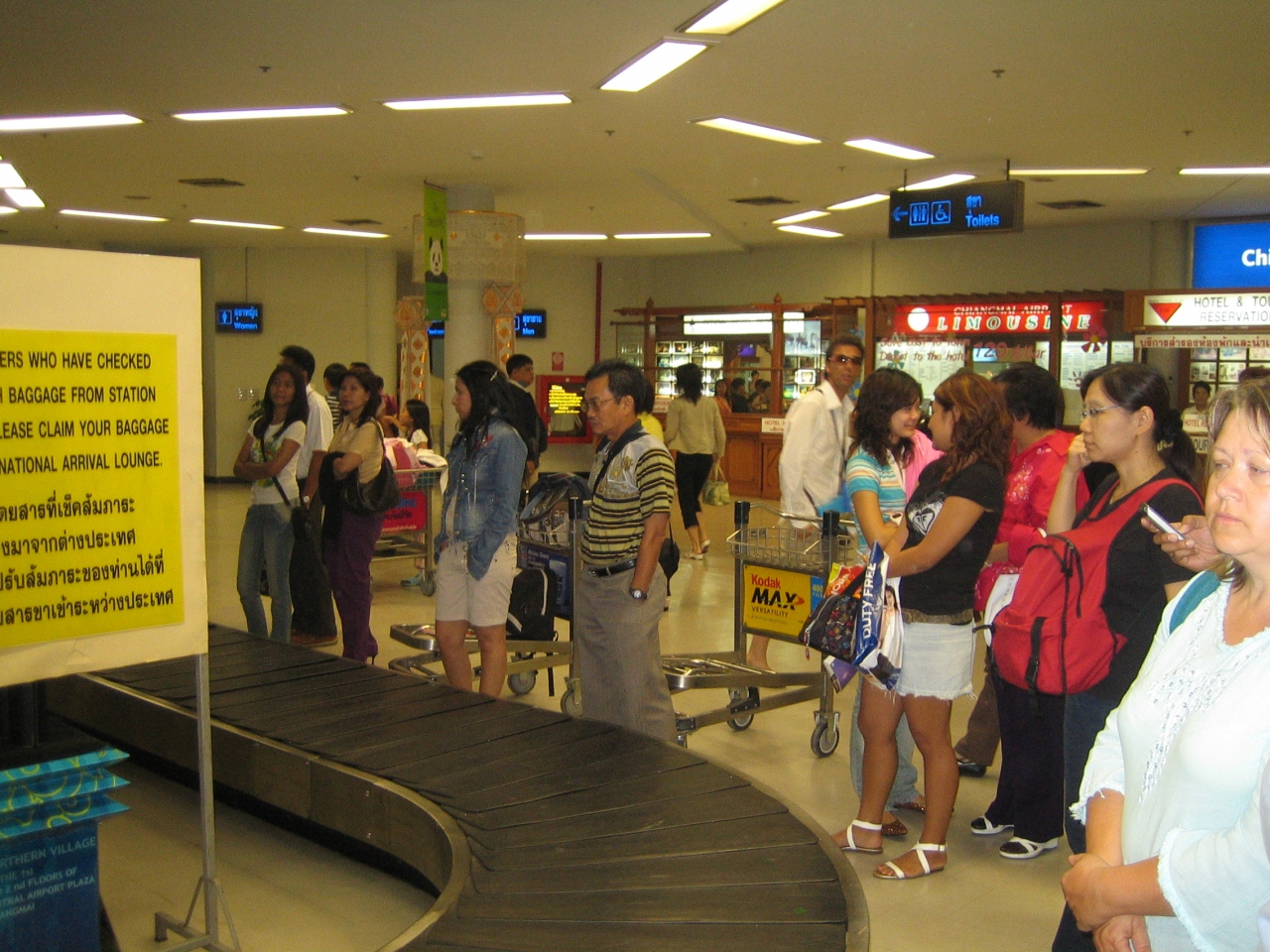 私達のバッグは、イミグレを通過しチェンマイ入国した人達のところに出ているはずである。