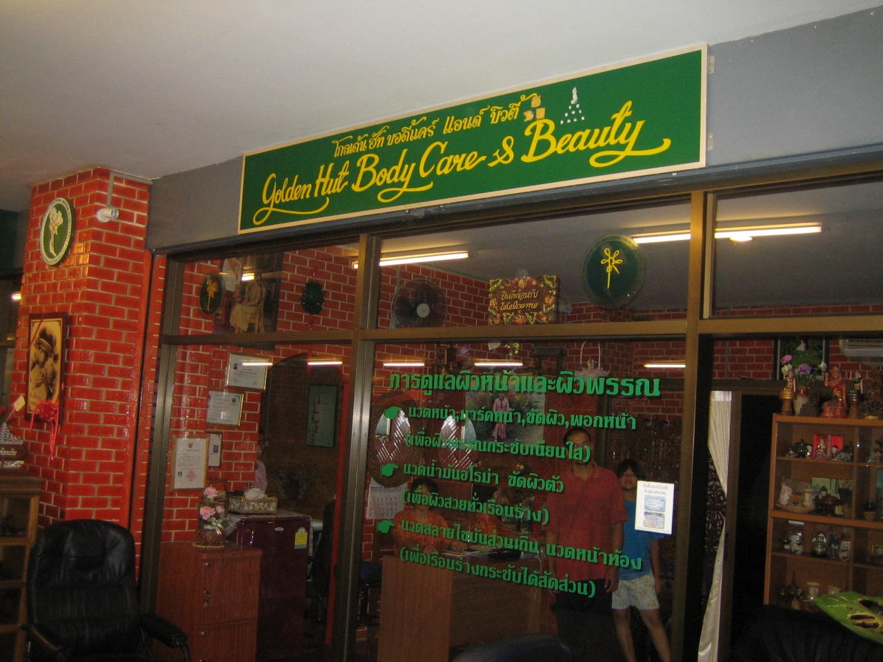 メーホーンソーンの目抜き通りにある、立派なビルの生協内(co−opの看板目印)1FにGOLDEN・HUT・BODYCARE&BEAUTYと英語の看板がかかったマッサージ店がある。