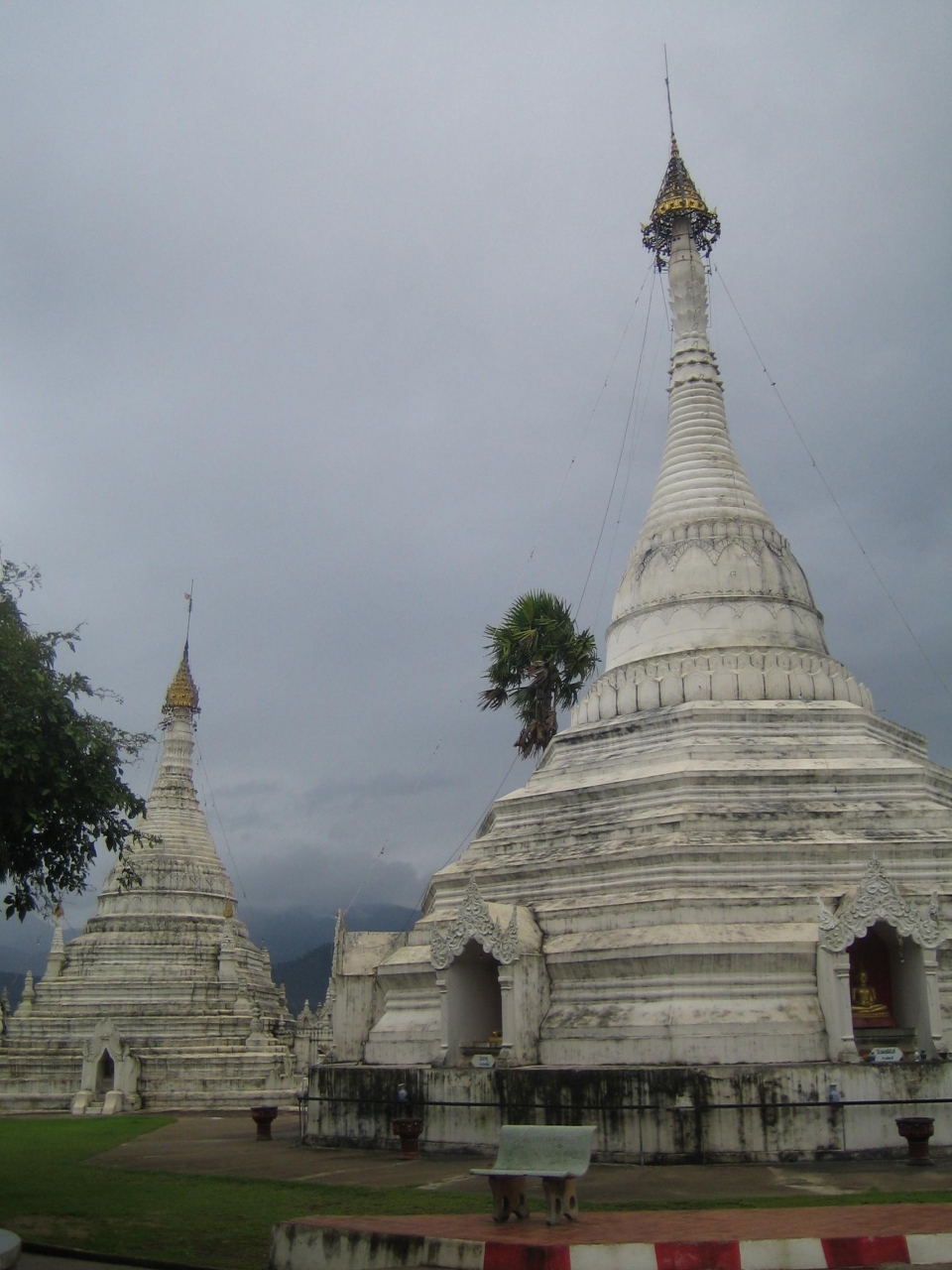 メーホーンソーンの街からすぐにある標高424mのコーンムー山頂に建立された寺院、ワット・プラ・タート・ドイ・コーン・ムーの仏塔側面には、7つの仏がぐるりと囲むようにして安置されている。