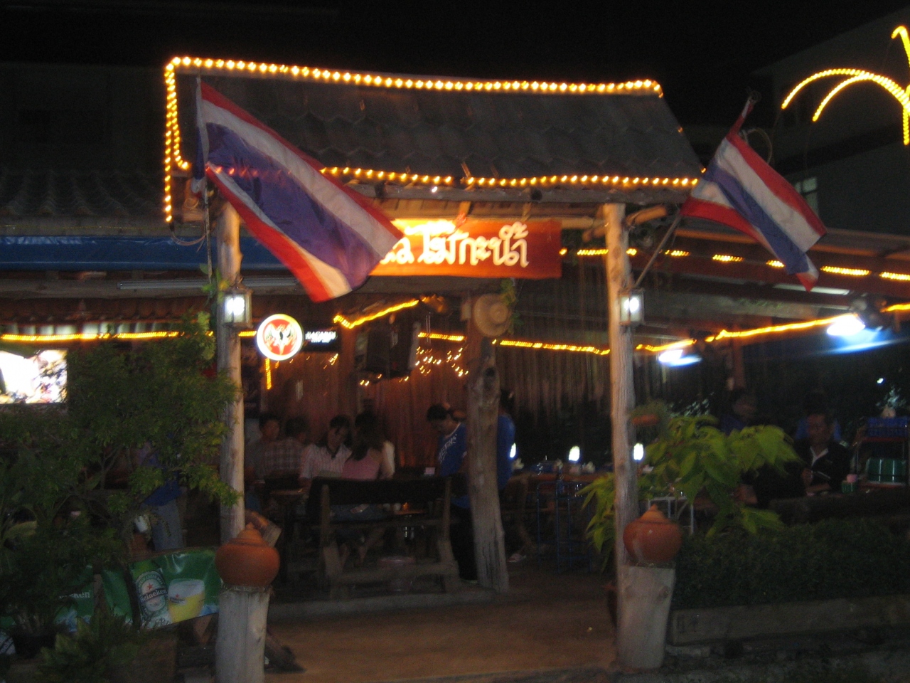 ラヨーンのシテイホテルのすぐ横の道にある(徒歩3分)にある、タイ国旗が掲げられたオープンエアーのタイレストランへ出かけた。
