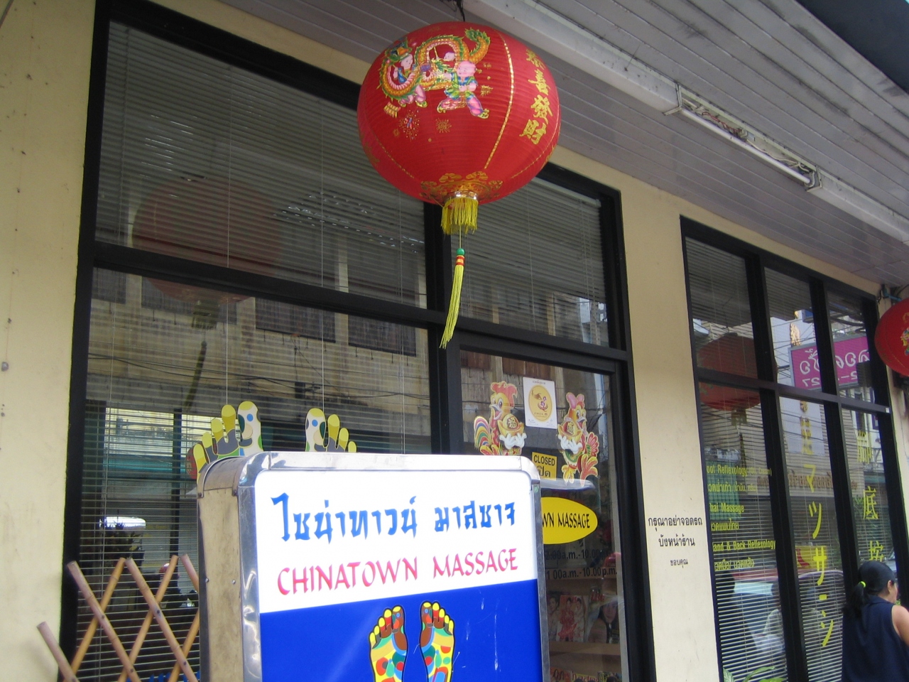 バンコクのチャイナタウン・ヤワラーのソイ・テキサスあたりにさしかかり、通り向かいのソイを見るとCHINA TOWN MASSGE という古式の看板があった。