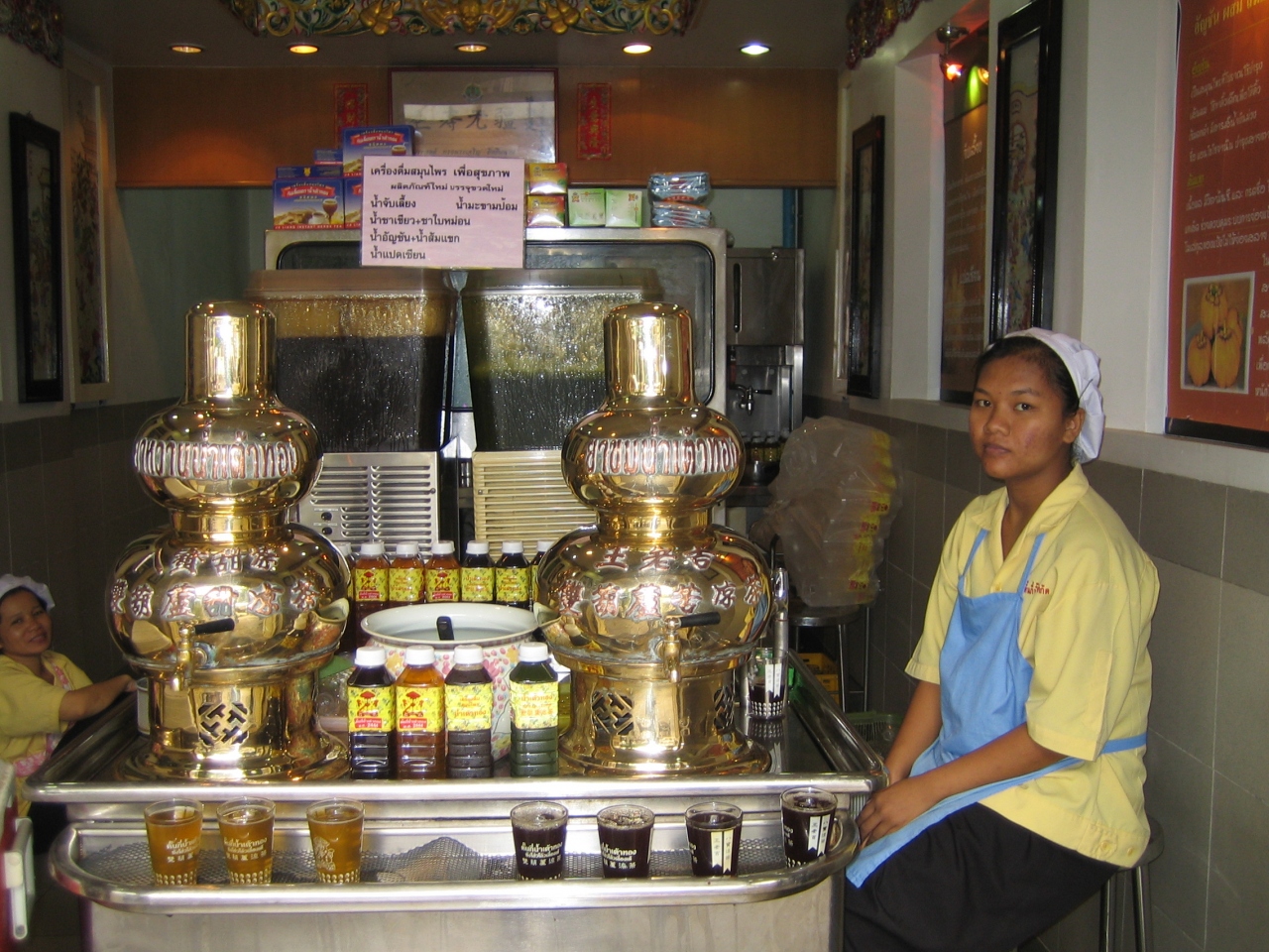 後ろの棚を見るとお茶が並んでいた、女店員にどれがいい?と尋ねるとこれと言うのでこれにした(250B)。