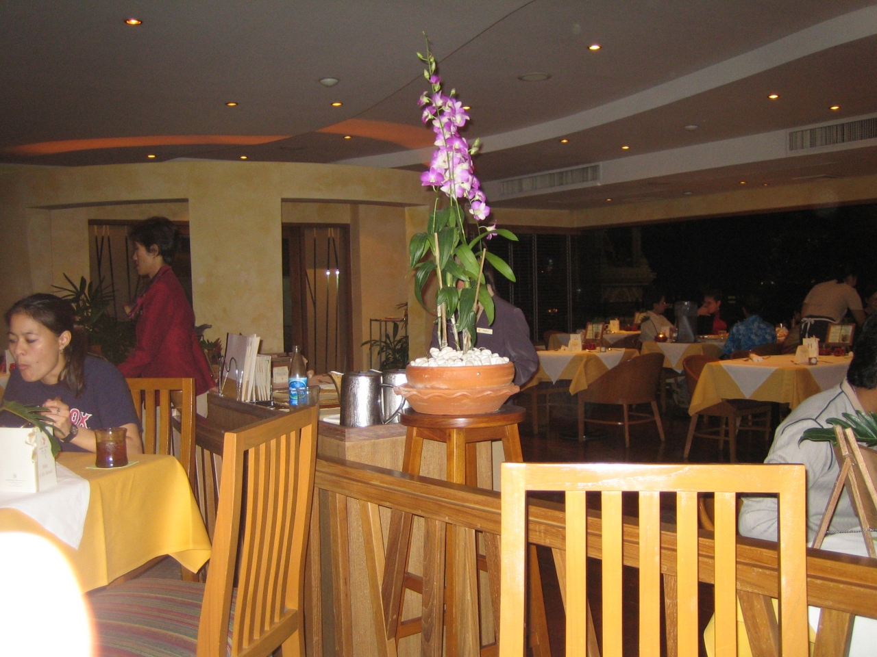 客はタイ人中華系のグループと女性一人の東洋人そしてインド系の人達と金髪のファラン(白人)達にて各国の人達がバランスよく座っている。