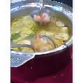 ス−プとご飯を別々に食してもいいし、ご飯の上にぶっ掛けてしょくしてもどちらでもお好みにて食されたらいい。