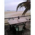 目の前がすぐビ−チ、海とテ−ブルの間には遮るものはない。