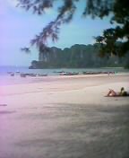半島の西側のライレイウエストビ−チは、白い砂浜が続く広い美しいビ−チにて長期間滞在者用のバンガロ-などが立ち並び、ファラン(白人)に人気のビ−チ。