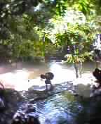 写真奥の濁流が河、手前が湯船この河へ温泉湯は流れ込んでいる温泉湯にてぬくもり、下の濁流の河にてひと泳ぎ、クラビ山間の光景。