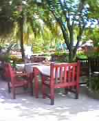その中でも小粋なレストランに立ち寄った客もまばらなので、すぐ目の前をビキニ姿のファラン嬢が通りすぎるビ−チ前の席に陣取る。