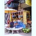 店前にテ−ブルと椅子そして屋台にミキサ-を出し新鮮な果物を目の前でミキサ-してジュ−スを作っていた。
