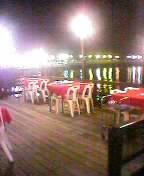 当然一押しのミ−カルナ−へ夕食に出かけた、宿から右へ歩いて5−6分の所に海上桟敷レストランが7−8店、英語文字のミ−カルナ−という看板を見つけて奥の海沿いのテラス席につく広い桟敷に客はそれほどいない(数組)夜も更けてきてなかなかのム−ド。