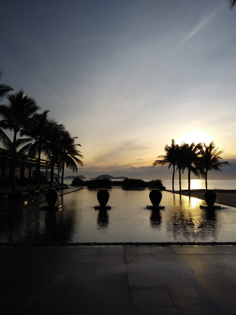 ミアリゾートニャチャンにもある壺?が、リゾート感満載!いろいろなカテゴリーの席がありましたが、ニャチャンビーチに近い席にしました。
