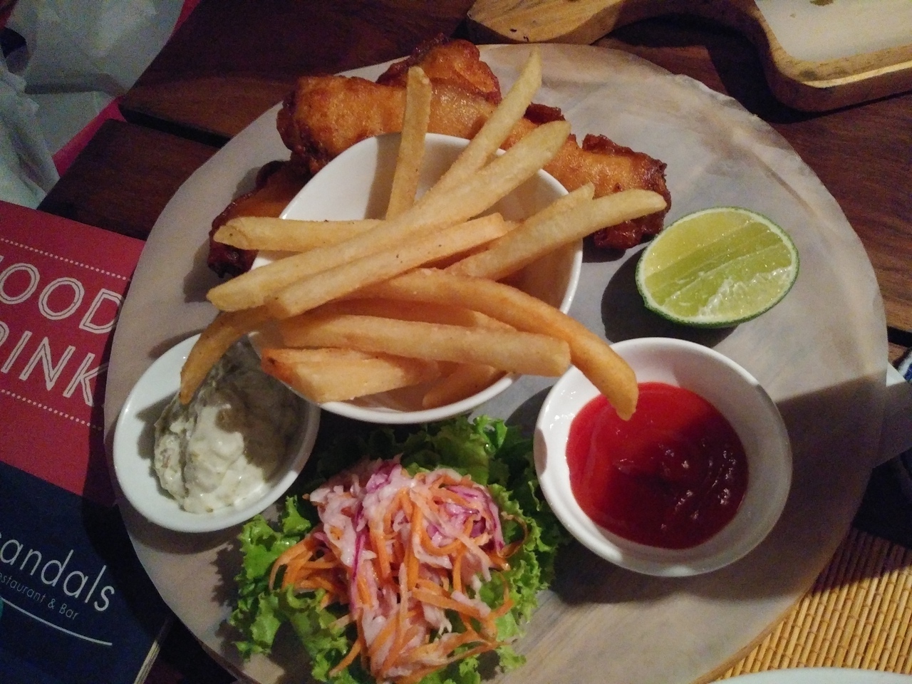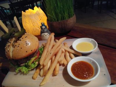 ハンバーガー、フィッシュ&チップス、揚げ春巻き、ドリンクを注文。ハンバーガーはバンズが固いですが、お肉がおいしい!揚げ春巻きおいしい!辛いもの苦手な私でもおいしく食べれました!