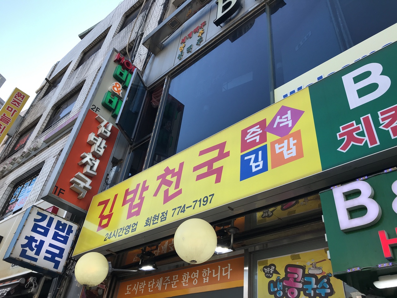会賢駅4番出口を出て目の前にあるキンパッ天国。嬉しい24時間営業です。