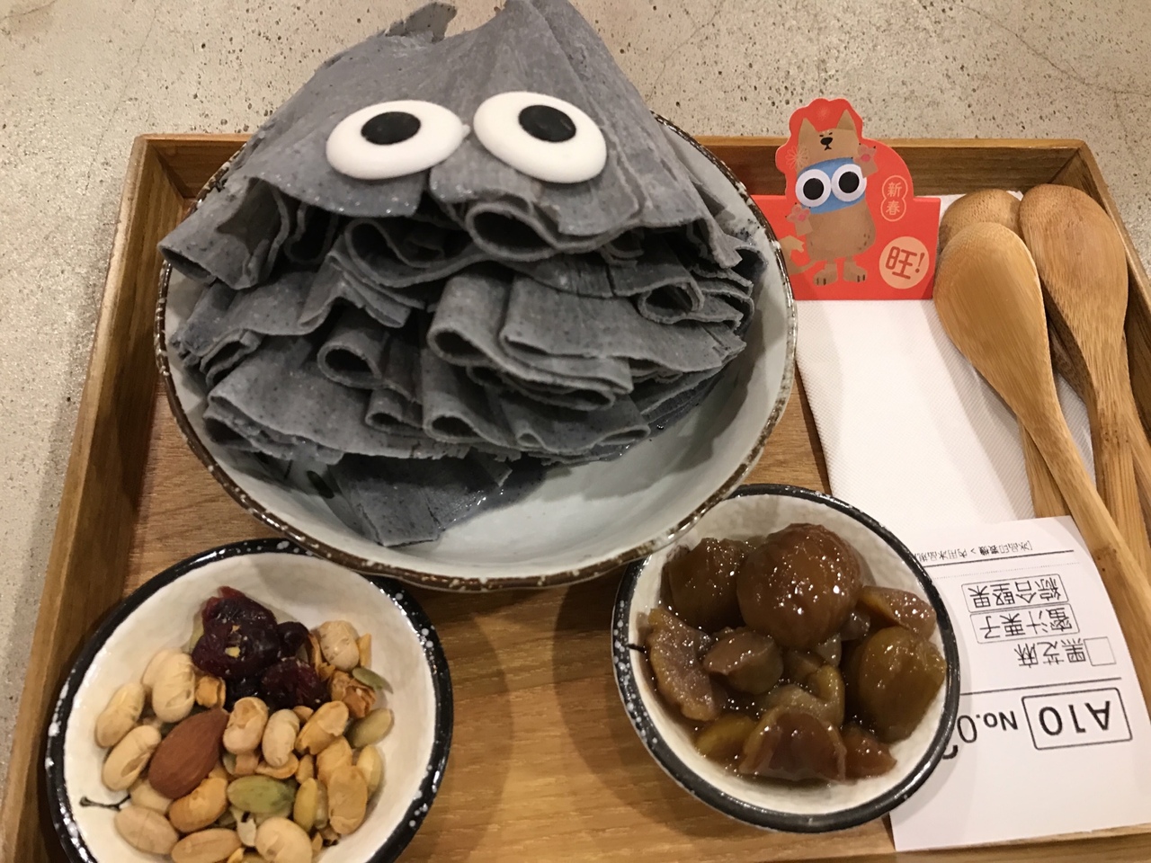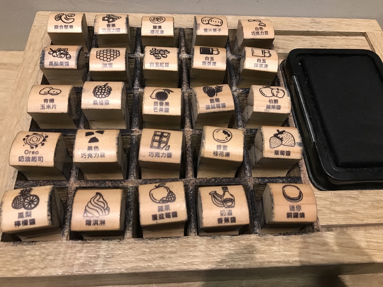 かき氷はたくさんあるトッピングから2種類選んでカードにスタンプを押してオーダーします。一人一品オーダーが必要になりますが温かいお茶もありますので私達はかき氷とお茶をオーダーしました。