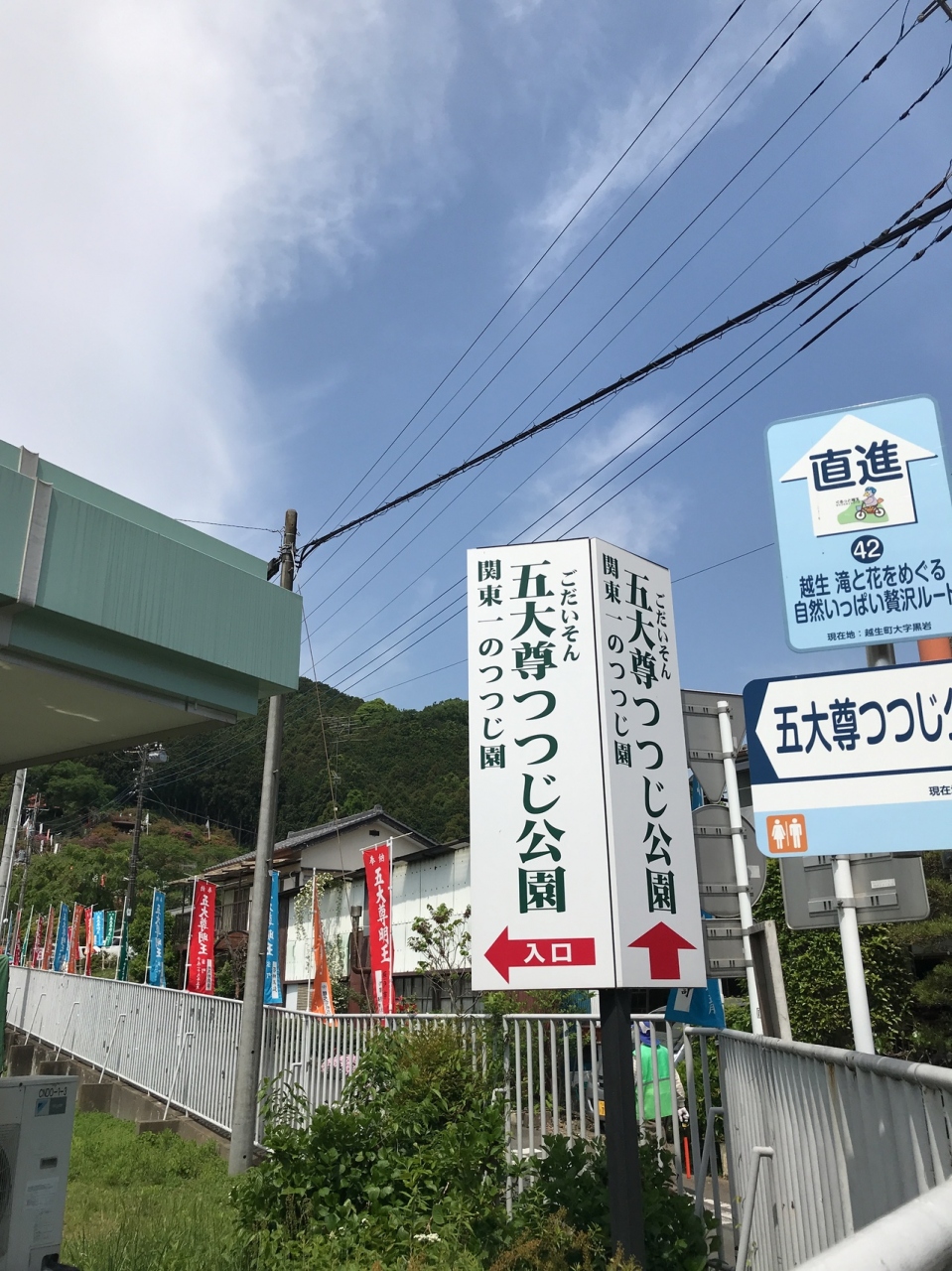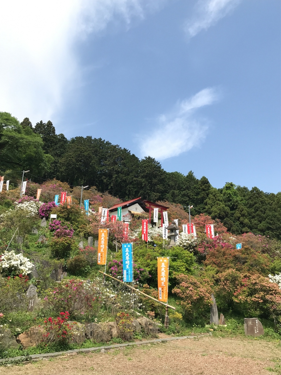 越生町にある五大尊。つつじが12種類、一万株あるとのことで時期になると『つつじ祭り』が開催されます。