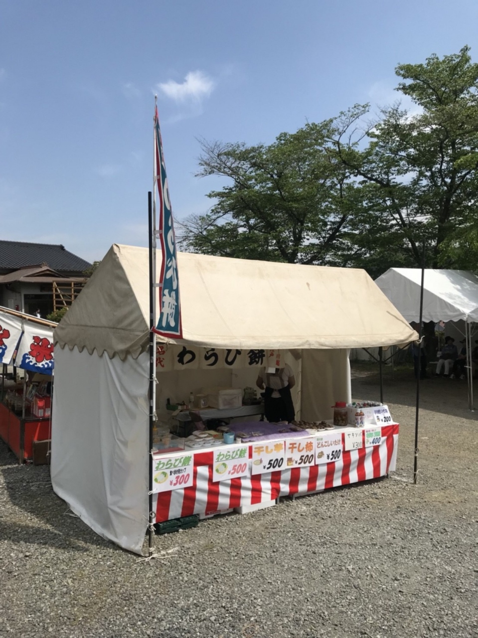 園の入口にはお祭りらしくちょっとした出店もあり特産物の販売やわらび餅、焼きそば、そしてかき氷などもありました。