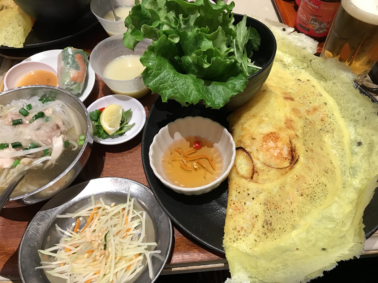 私は大好きなバインセオのセットにしましたが、フォーは4種の味から選べ、生春巻き、デザート付、そして飲み物はプラス300円でビールにも出来ます。