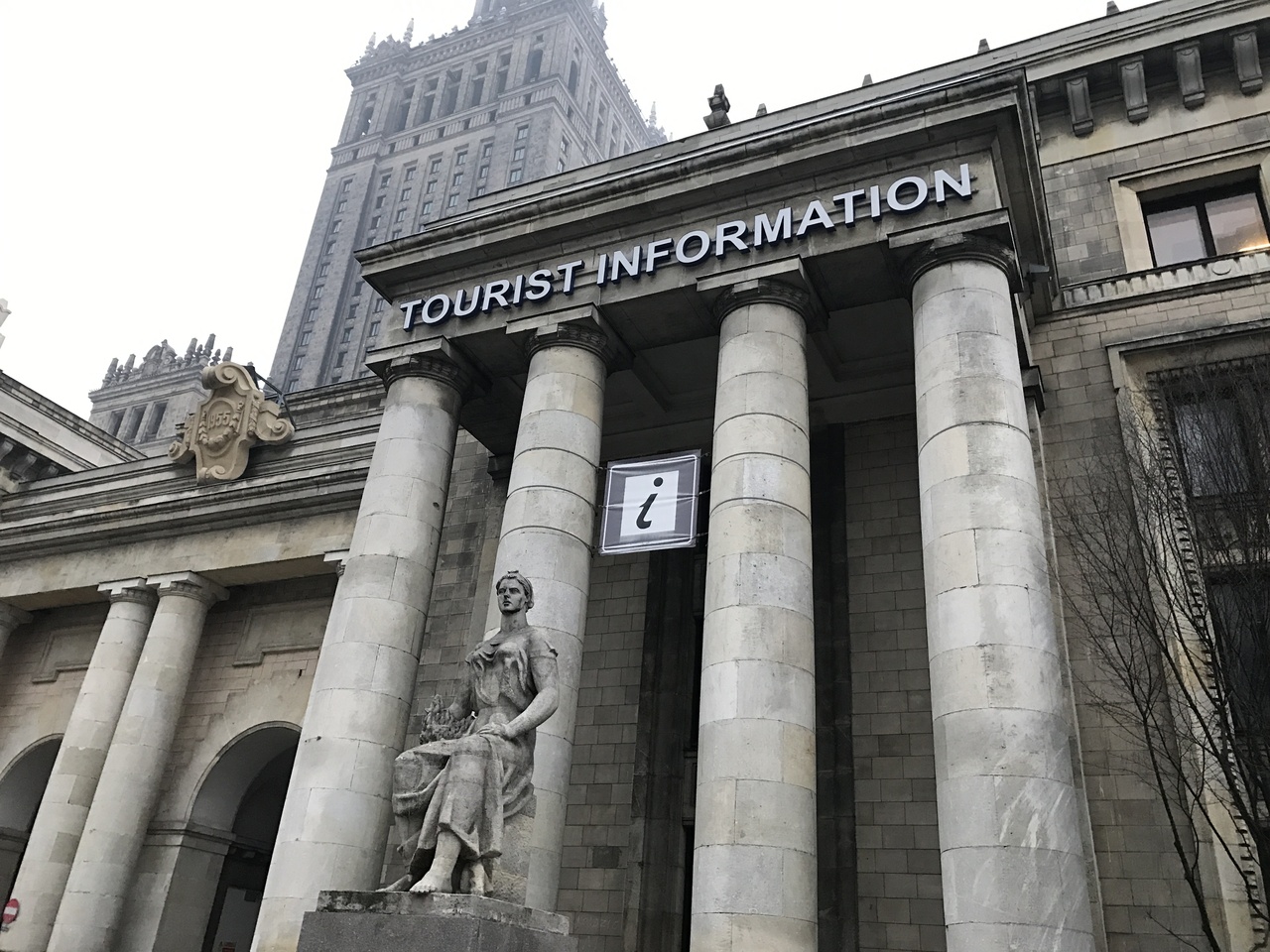 文化科学宮殿の中にあるインフォメーションセンターです。ワルシャワ中央駅方面に面していて、1階にあるのでわかりやすく入りやすいです。