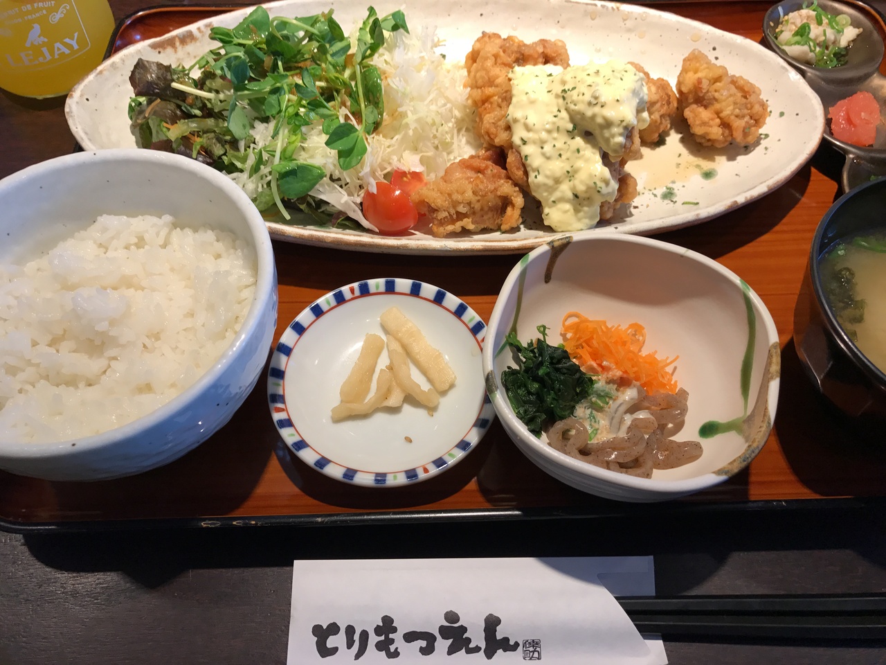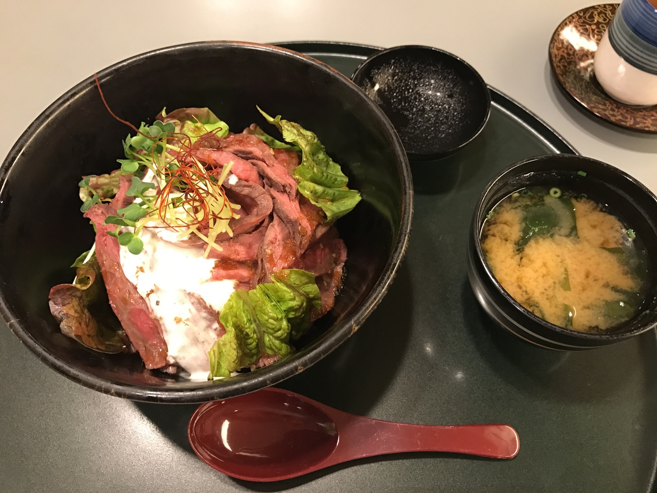 こちらは焼かれた薄切牛肉の上にブラウンシチューがかけられたもので、ボリュームたっぷりで美味しかったです。チキン南蛮の方はお野菜の量が多目で女性にオススメ出来ます。小鉢も付いてます。