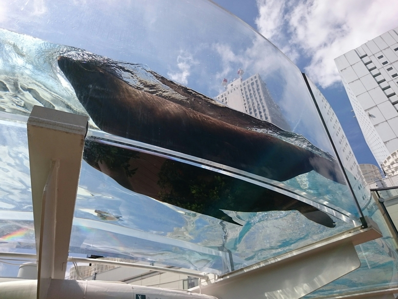 ペンギンと同じく野外エリアにはペリカンやアザラシもいます。こちらも透明な水槽の中を行ったり来たりして泳いでいる姿が見られます。