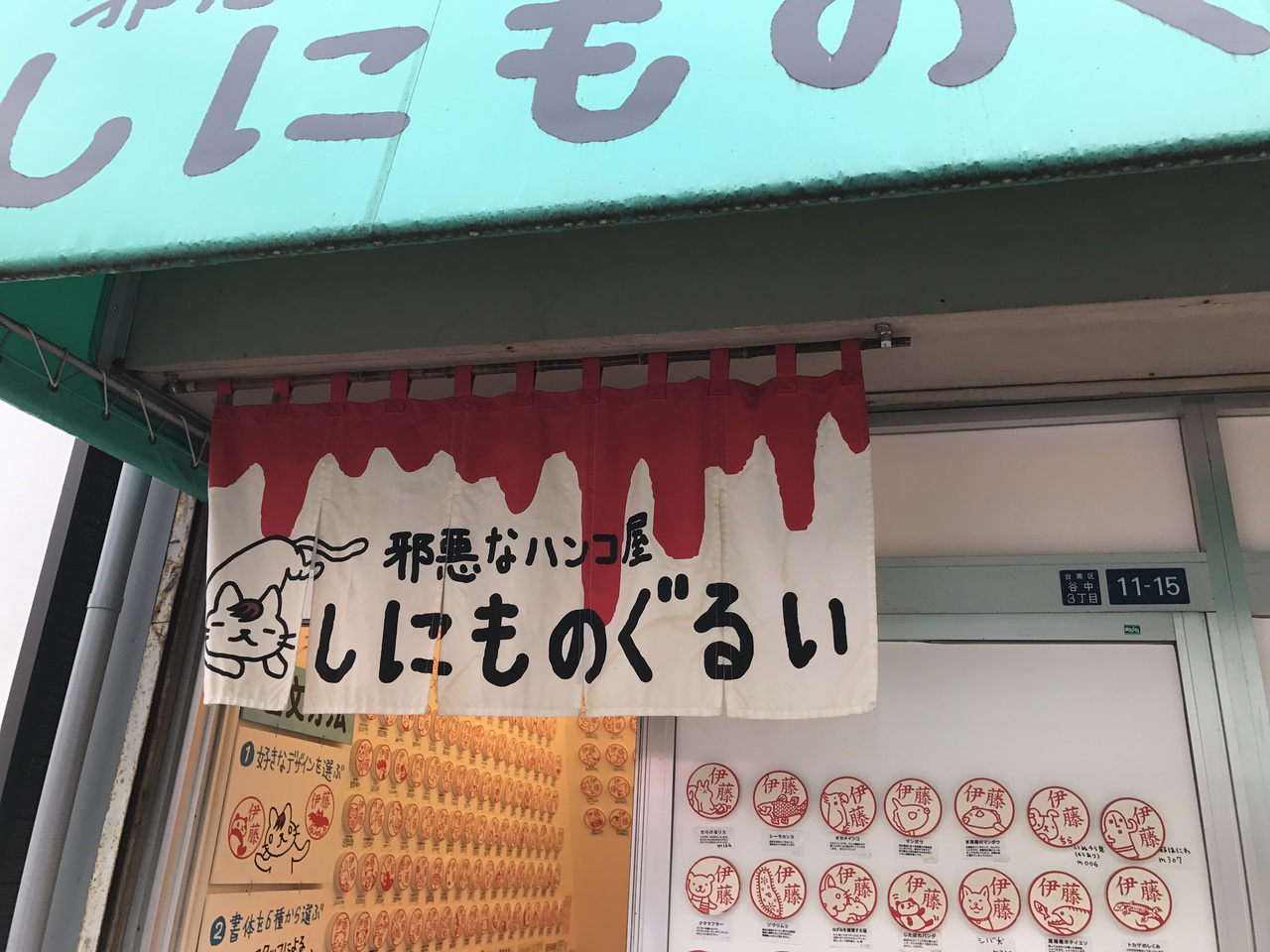お店の名前がなぜ『しにものぐるい』なのかわかりませんが、名前からは想像出来ないような可愛いハンコ屋さんです